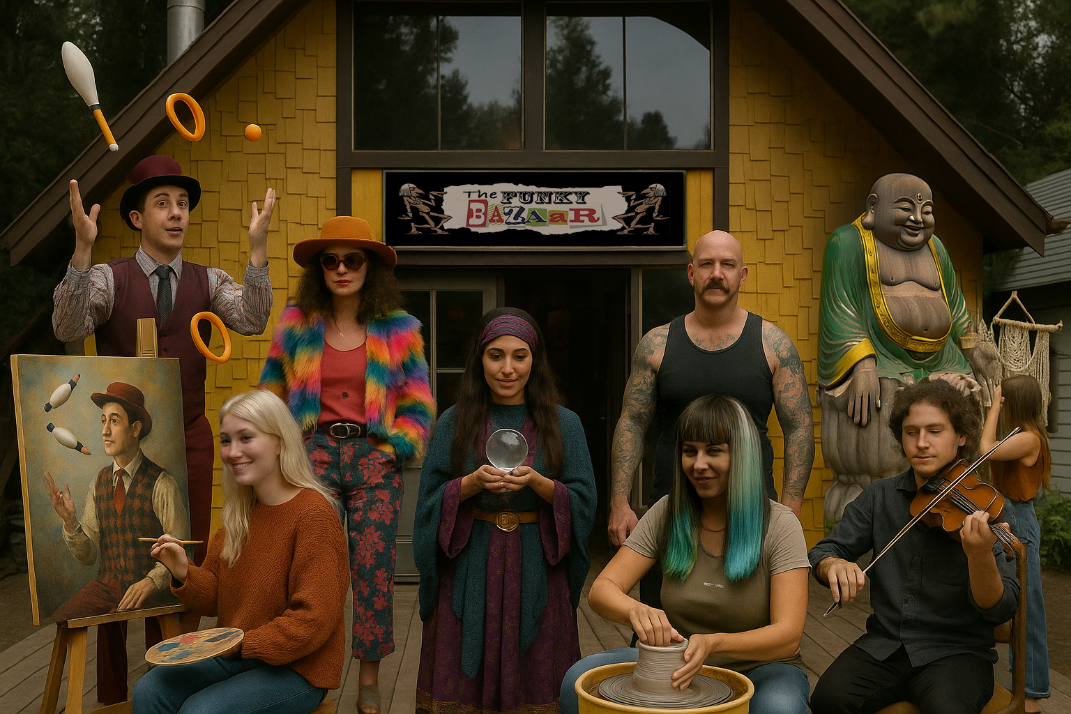 The Funky Bazaar is an indefinable assortment of local arts, crafts, collectibles, curiosities and just plain cool sh#!@, It is steam-punk friendly and generally weird.